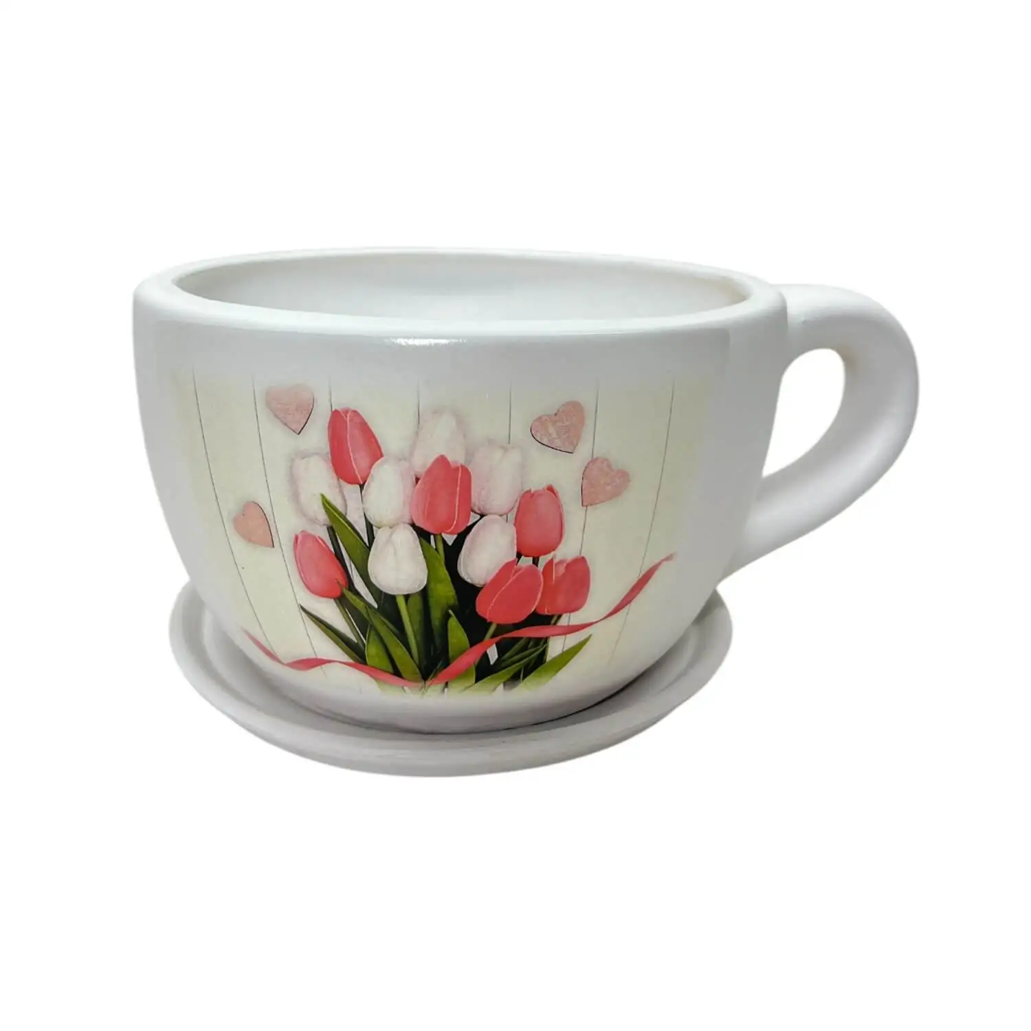 Ghiveci din ceramica in forma de ceasca cu farfurie. Potrivit atat pentru interior cat si pentru eterior.